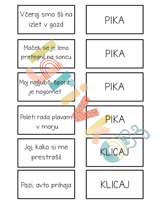 Igra s kartami - tvorjenje povedi